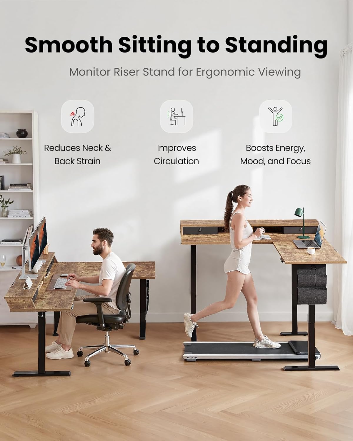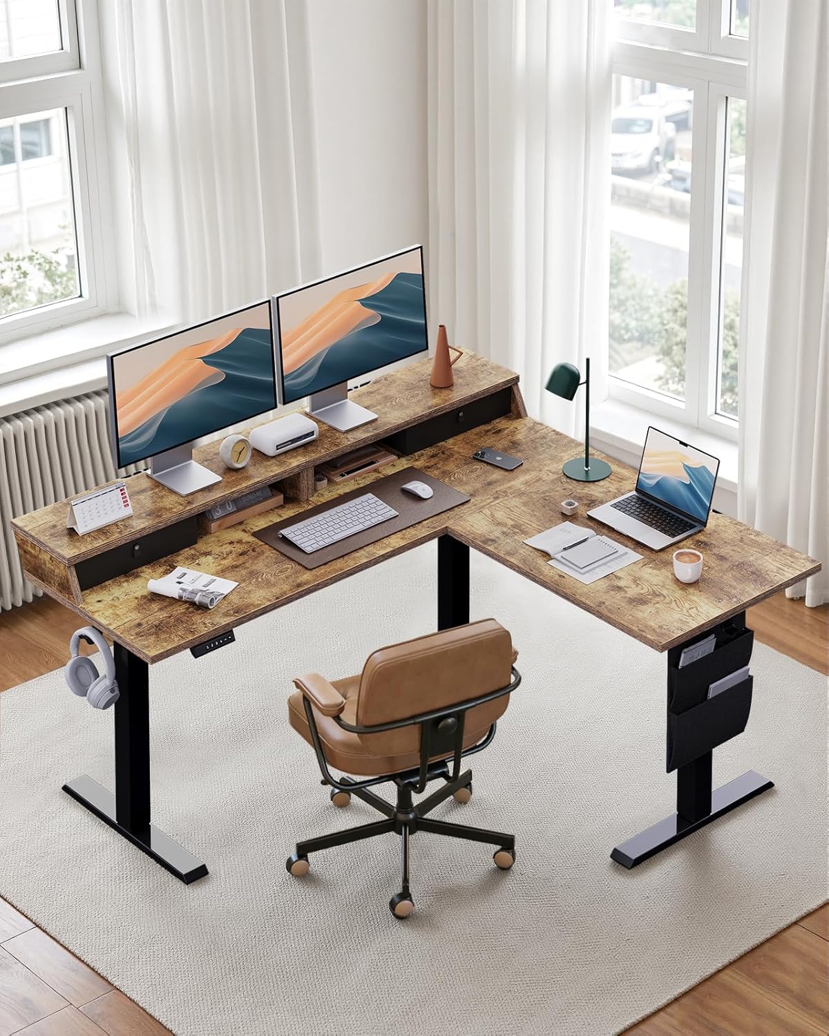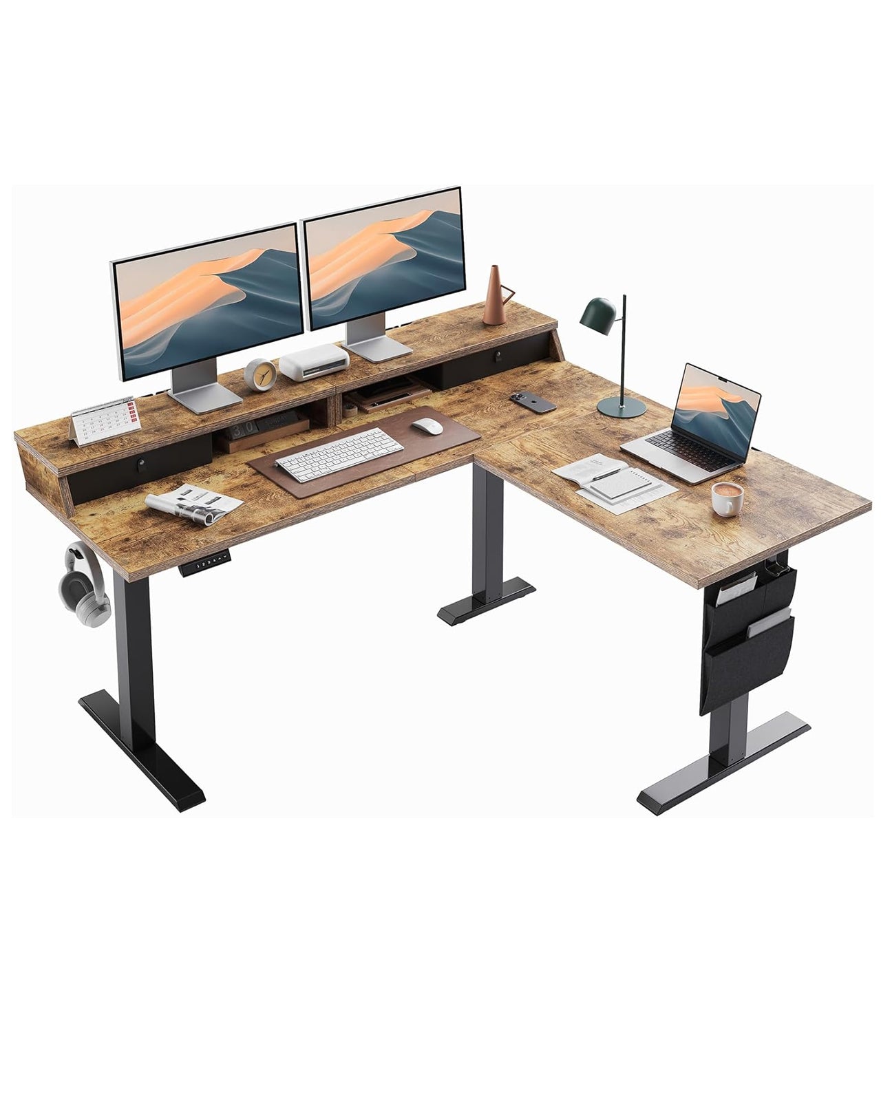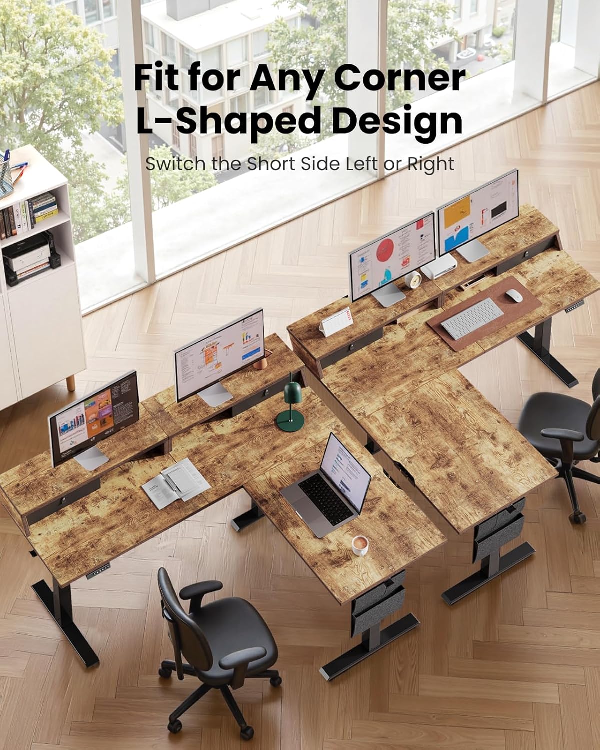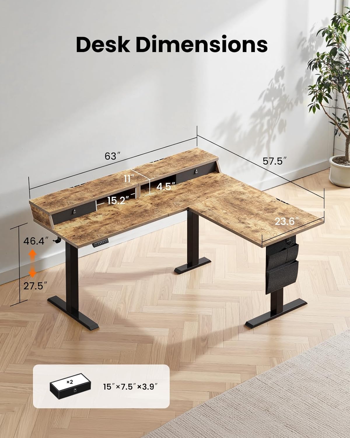 63" L-Shaped Electric Standing Desk with Drawers – ErGear